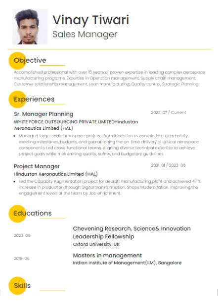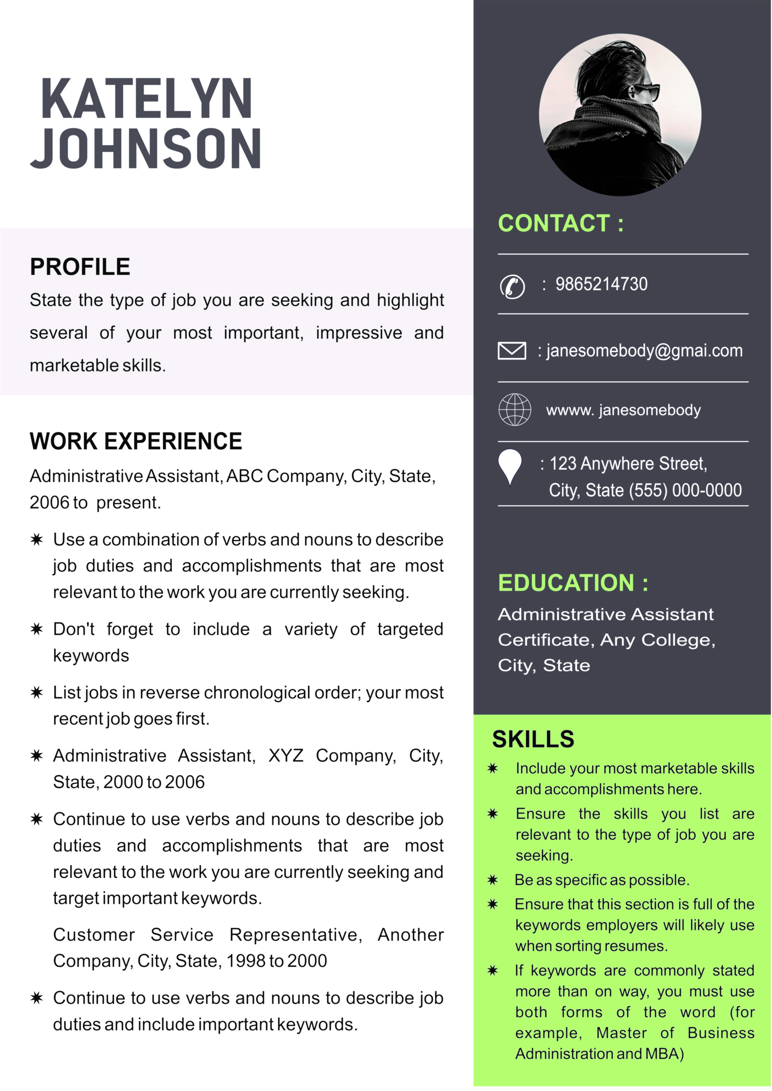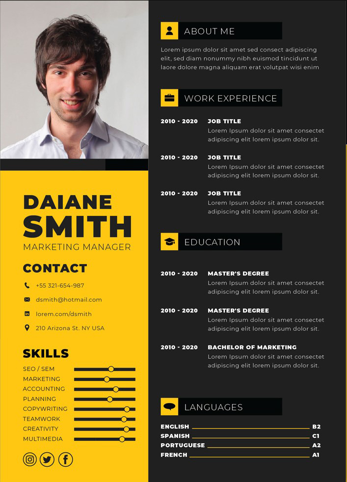 Each resume template is organized into major content sections. You can add or remove specific sections based on your needs.